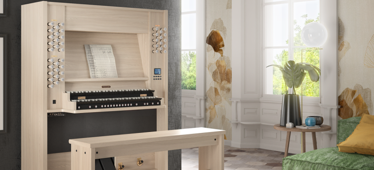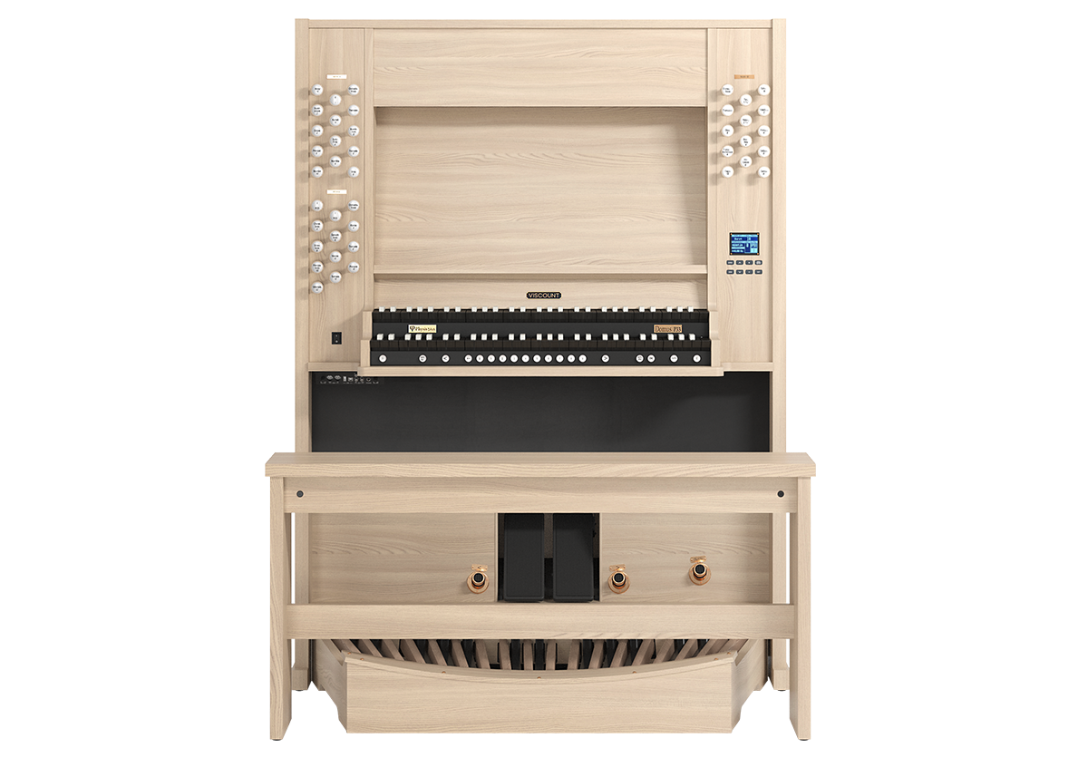 Die Domus P33 von Viscount ist eine außergewöhnliche zweimanualige Orgel, die mit einem charmanten und vielseitigen Positiv-Stilgehäuse ausgestattet ist.  Perfekt für kleine Räume wie Wohnungen oder kleine Kirchen geeignet, kompakt aber unglaublich leistungsstark, ist diese Orgel aus Holz mit Laminatoberfläche in zwei eleganten Ausführungen erhältlich: In heller, freundlicher und dunkler, edel wirkender Farbgebung. Ihre Tastatur ist mit Holzfurnier beschichtet und verleiht ihrer Gesamtästhetik eine einladende Note. Jedes Detail dieses atemberaubenden Instruments wurde sorgfältig gefertigt, um seine hervorragende Qualität und Leistung zu gewährleisten.