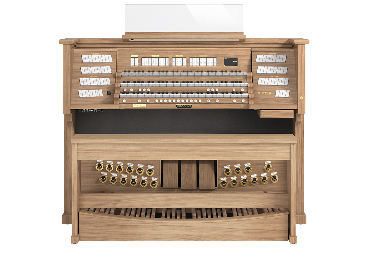 Opera 400 ist eine dreimanualige Orgel mit einem 32-tönigenPedal der neuen Generation, ausgestattet mit 55 Registern (+ 8 Orchester). Ideal für den fortgeschrittenen Organisten, enthält Opera 400 den Physis Plus Editor (kostenlos), der dem Benutzer viele Anpassungsoperationen sowohl in Bezug auf die Erzeugung als auch auf die Klangverbreitung ermöglicht. Der Tracker-Touch-Effekt wurde verbessert und vermittelt ein angenehmes “echtes Gefühl”, das es bisher nicht gab. Er wird auch mit dem Tracker Noise gemischt, der einige Details des für mechanische Orgeln typischen Holzgeräusches hinzufügt. Das Verstärkersystem mit zwei vorderen Tieftönern und einem nachhaltigen digitalen Verstärker der Klasse D spart Strom und sorgt für maximale Effizienz. Das Nachhallsystem wurde als echter TRUE STEREO-Hall mit zahlreichen editierbaren Parametern und mehr Slot-Presets für den Benutzer komplett neu gestaltet. Opera 400 verfügt über alle neuen Pipe-Sets von Viscount, mit der Möglichkeit, sie mit zahlreichen zusätzlichen Orchesterstimmen anzupassen.